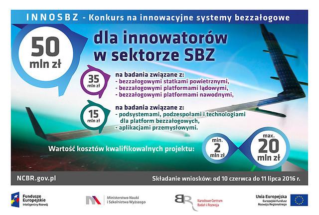 Do konkursu „INNOSBZ” mogą przystąpić przedsiębiorcy lub konsorcja składające się wyłącznie z przedsiębiorców. NCBR planuje przeznaczyć 35 mln zł na badania związane z bezzałogowymi statkami powietrznymi klasy mini, VTOL/STOL, krótkiego i średniego zasięgu, MALE i śmigłowcami. Ponadto część tej kwoty wesprze budowę bezzałogowych platform lądowych oraz nawodnych. Kolejne 15 mln zł trafi do firm zajmujących się podsystemami, podzespołami i technologiami dla platform bezzałogowych, m.in. producentów sensorów, systemów łączności i sterowania, analizy i przetwarzania obrazów oraz manipulatorów i efektorów, a także do twórców aplikacji przemysłowych.