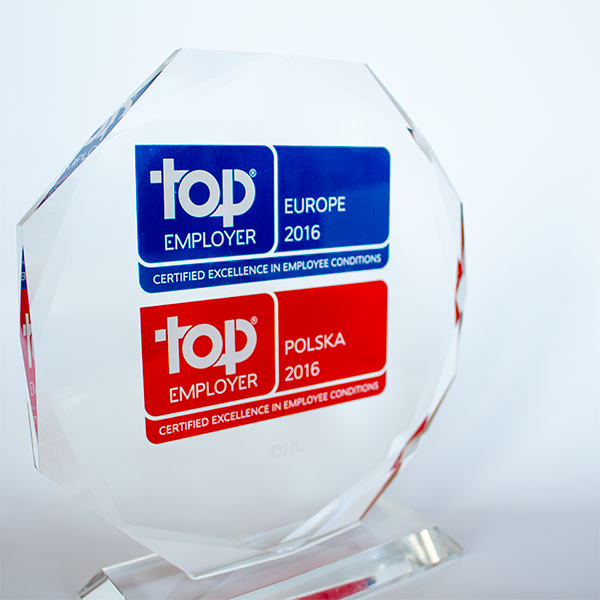 Firma DHL Express zdobyła prestiżową certyfikację Top Employer Poland 2016 oraz Top Employer Europe 2016 za wyjątkowe warunki pracy, lokującą ją w gronie najlepszych pracodawców na świecie. Przyznane wyróżnienie podkreśla wyjątkową politykę zatrudnienia realizowaną w organizacji DHL Express w Polsce oraz w innych krajach. Według niezależnego badania Top Employers Institue, DHL Express wyjątkowo troszczy się o swoich pracowników, zaś przyznane jej wyróżnienie jest wyrazem uznania za postawę wspierającą rozwój pracowników.