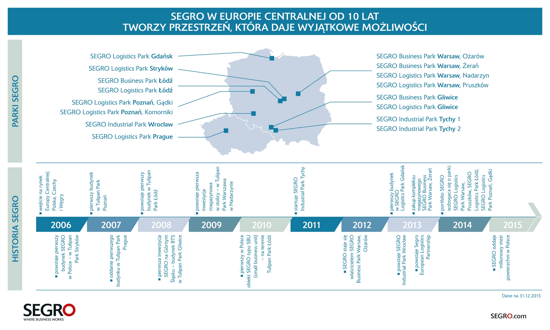Segro już od 10 lat dostarcza nowoczesne powierzchnie magazynowe i produkcyjne na terenie Polski i Czech, nieustannie plasując się w branżowej czołówce. W Polsce portfel firmy stanowi ponad 10% rynku, dzięki czemu jest ona drugim co do wielkości graczem, mającym istotny wpływ na kierunki i dynamikę rozwoju całego sektora nieruchomości.