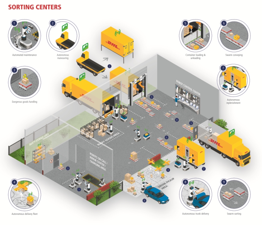 Clemens Beckman, wiceprezes ds. innowacji i działalności PeP (Post – eCommerce – Parcel) w Grupie DPDHL stwierdza: – Tak samo, jak nasze dzieci nie potrafią wyobrazić sobie świata bez komputerów, prawdopodobnie ich dzieci nie będą w stanie wyobrazić go sobie bez robotów. Opracowanie robotów przemysłowych nowej generacji, zdolnych do pracy z ludźmi i wokół nich, będzie wymagało olbrzymich nakładów inwestycyjnych na rozwój technologii tego typu, lecz my w Grupie DPDHL wierzymy, że towary będą wkrótce obsługiwane w łańcuchach dostaw szybciej i oszczędniej przez roboty i ludzi współpracujących ze sobą.