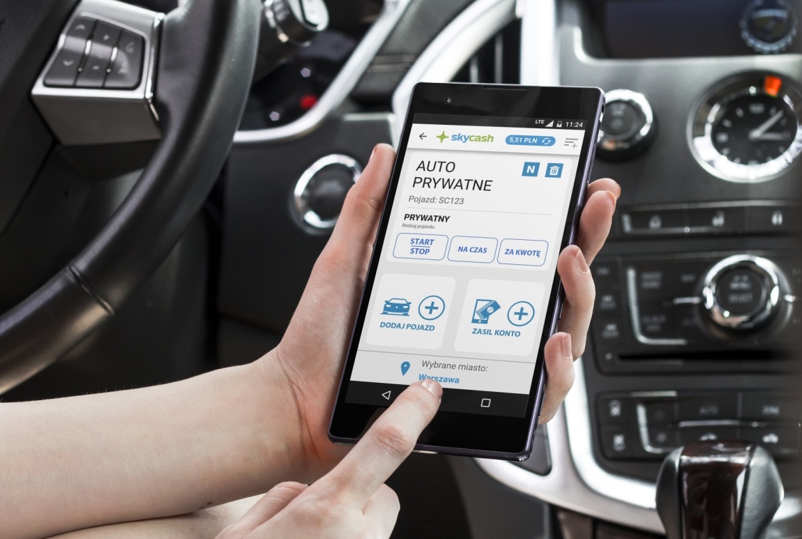Tak jak dotychczas, usługa mobiParking jest dostępna z poziomu menu głównego aplikacji SkyCash. Całkowitemu przemodelowaniu uległ jednak jej wygląd oraz rozmieszczenie poszczególnych funkcji. Dzięki temu wykonanie wszystkich czynności związanych z rozpoczęciem postoju odbywa się teraz na zaledwie dwóch ekranach. Na pierwszym z nich kierowca wybiera auto, które chce zaparkować i określa sposób naliczania opłaty. Po przejściu do kolejnego ekranu może od razu uruchomić parkowanie, bez konieczności zatwierdzania płatności kodem PIN.