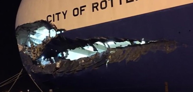 Samochodowiec City of Rotterdam zderzył się z promem ro-ro, Primula Seaway, należącym do DFDS, podczas przeprawy przez rzekę Humber.