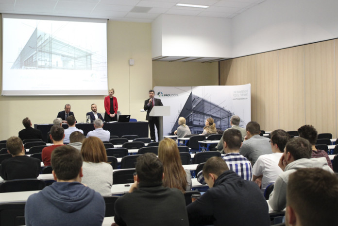 Podczas dwugodzinnej prelekcji eksperci Prologis zaprezentowali pozycję obiektów magazynowych w ciągu dystrybucji, wady i zalety różnych form użytkowania nieruchomości oraz wpływ prawidłowego zarządzania budynkiem na sprawność łańcucha dostaw. Swoim wystąpieniem uświadomili przyszłym specjalistom, dlaczego logistyka bez magazynu nie jest możliwa.